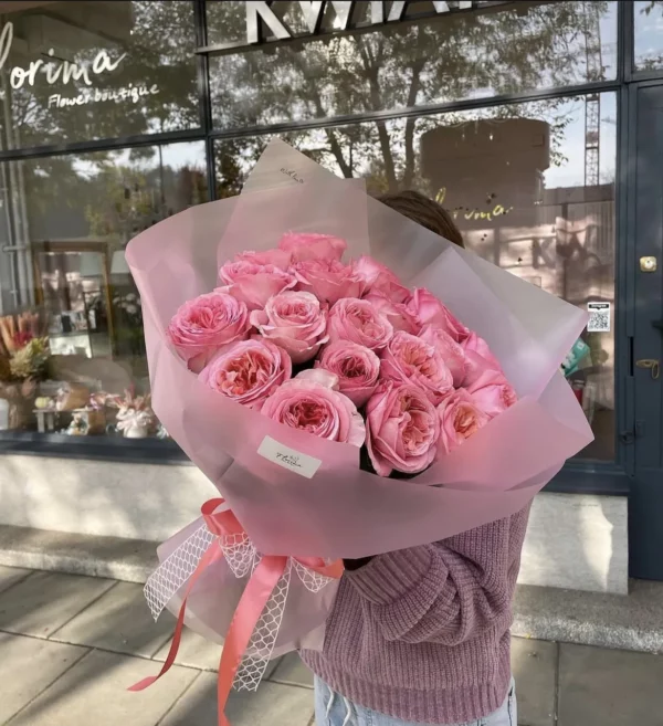 These pink roses made a huge impression! Long stem, beautiful color, everything fresh and elegantly packaged. The girl couldn't stop smiling. I chose the balloons separately and the whole thing looked perfect