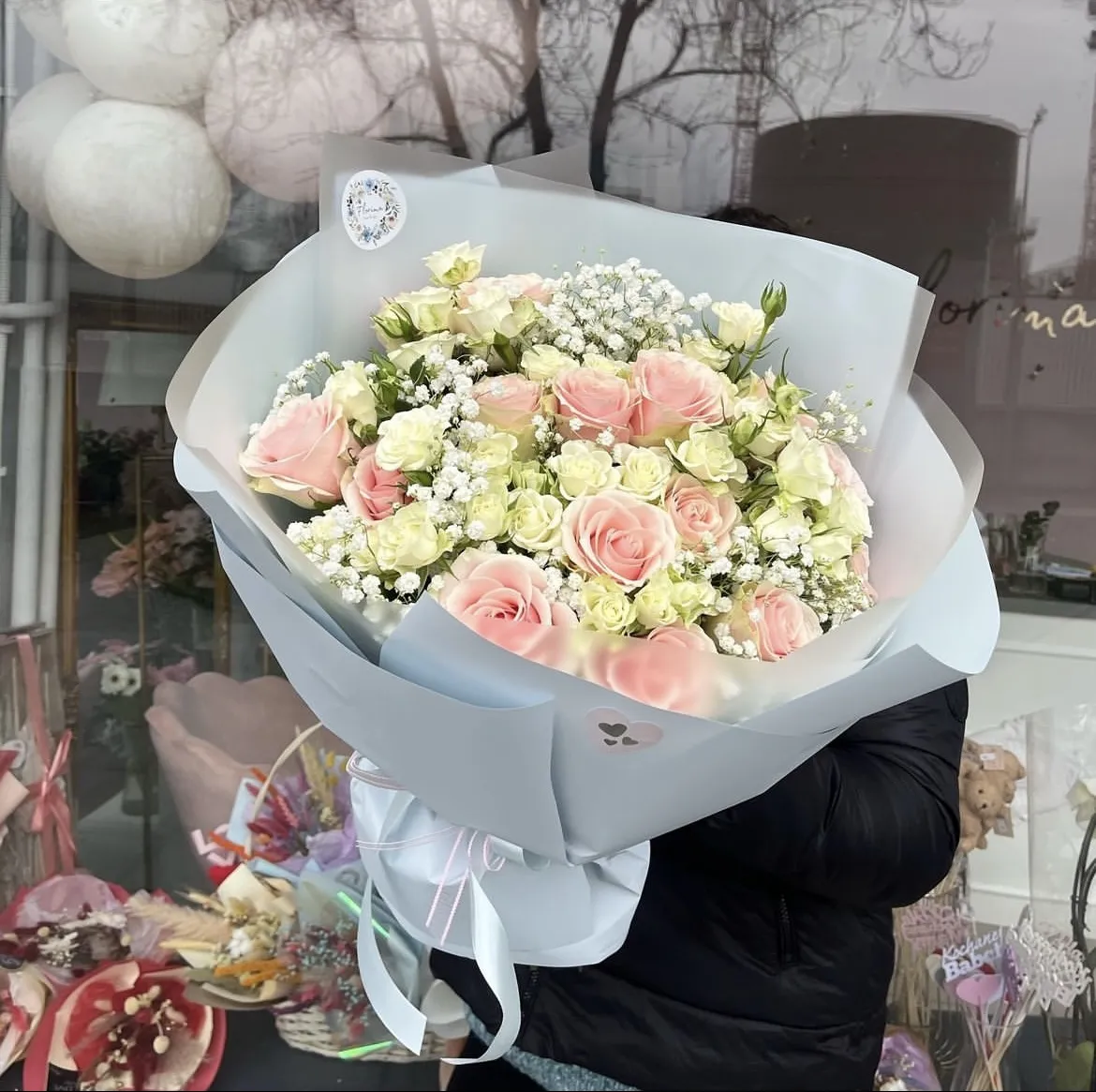 I ordered a bouquet of white and pink roses and gypsophilium for my mother's name day. The only comment - the packaging was slightly crushed, but the flowers themselves looked fresh and beautiful, so there was no problem.