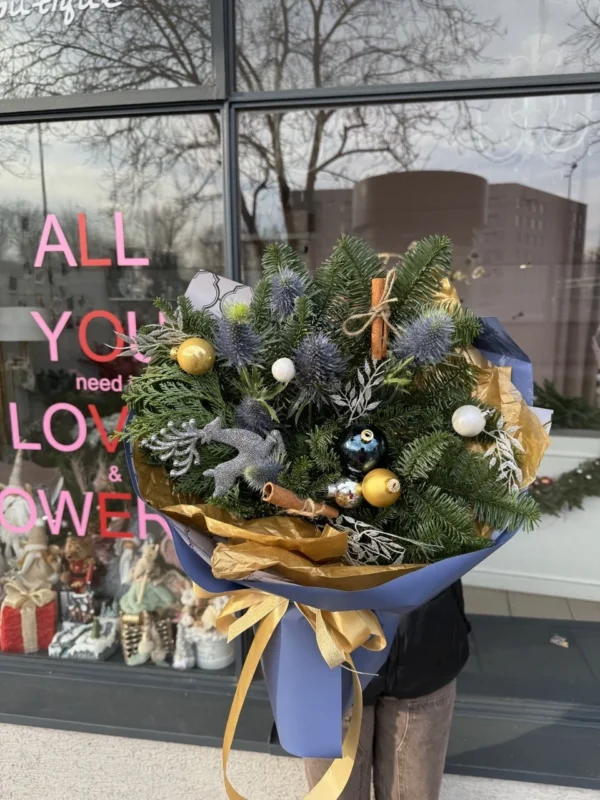 I ordered this bouquet to bring the holiday spirit into my home before Christmas Eve. It arrived carefully packaged; nothing had fallen apart or shifted during transport. The scent of nobilis and cinnamon immediately created a festive atmosphere.