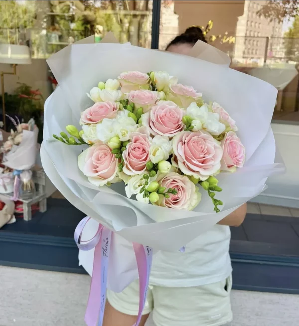 Kategorie: Bukiety kwiatów mieszanych, Bukiety z frezji, Bukiety z róż, Dla kogo?, Dni Rodziny, Dzień Matki, Dzień Nauczyciela, Kolekcja Letnich Kwiatów, Kolekcja Wiosennych Kwiatów, Kolekcje sezonowe, Kwiaty, Kwiaty dla dziewczyny, Kwiaty dla koleżanki, Kwiaty dla mamy, Kwiaty na komunię, Kwiaty na podziękowanie, Kwiaty na rocznicę, Niespodzianka, Okazje, Rodzaje kwiatów, Urodziny