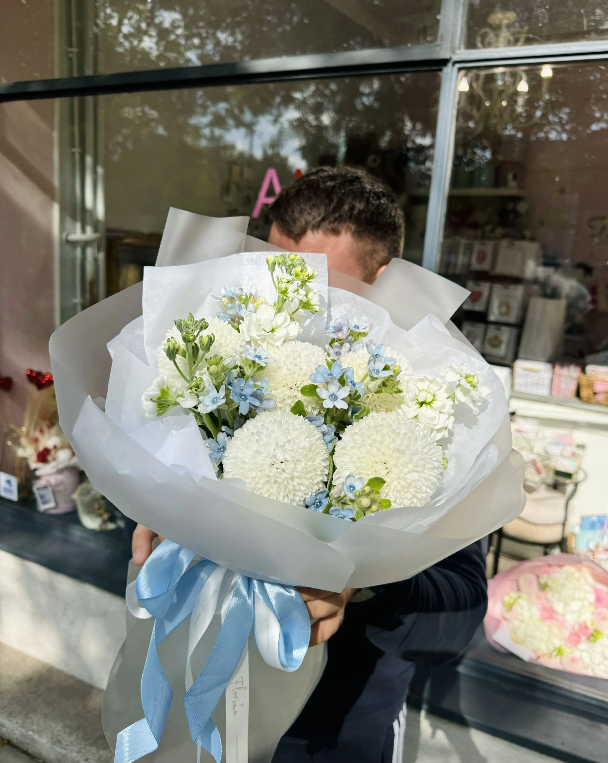 Букет #28 Суперкубковая хризантема и оксипеталлум