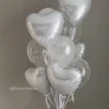 Букеты из латексных шаров (30 см) с белым с сердечками фольга (35 см)