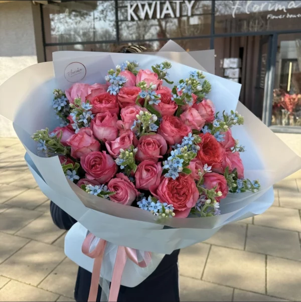 Я купил "Розовые розы и оксипеталум" в качестве сюрприза для своей девушки, и это был отличный выбор! Нежные розовые розы и голубой оксипеталум восхитили ее с первого взгляда.