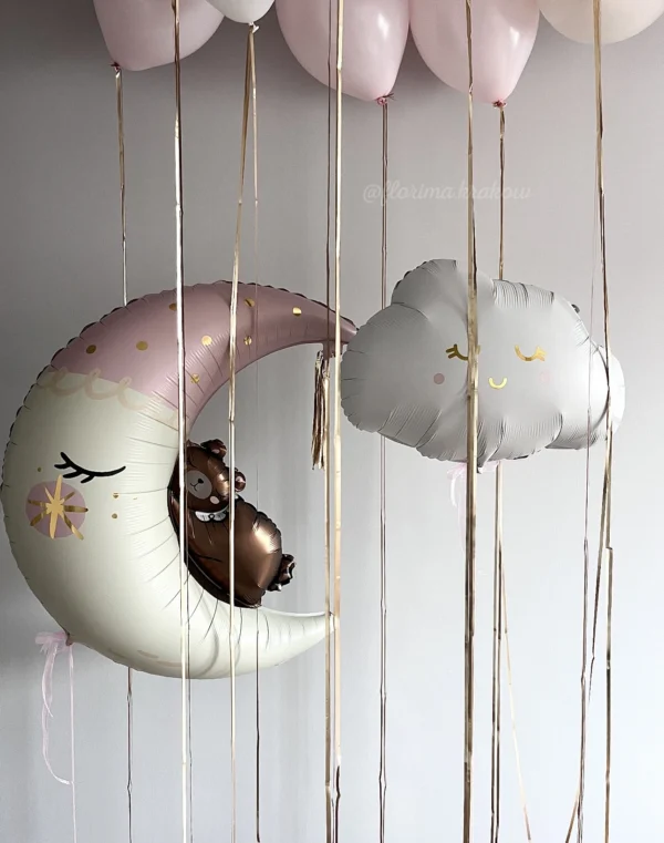- Фольгированный воздушный шар в форме луны, розовый, 71×86 см, 1 шт.